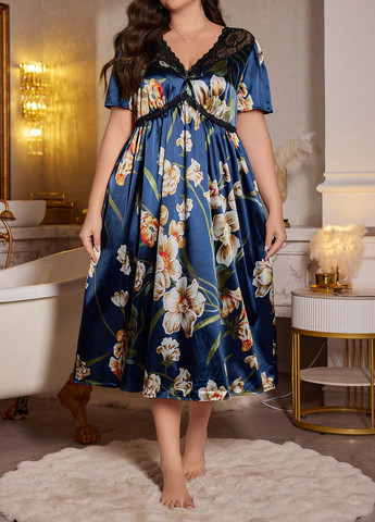 Елегантна жіноча нічна сорочка вільного крою. Ця нічна сорочка зручного вільного крою. З принтом у вигляді серця по всій тканині. Застібка на гудзики спереду та кишені. Підходить для домашнього носіння. Тканина трикотажна, з додаванням поліестеру та еластану. Прати у пральній машині в холодній воді на делікатному режимі.