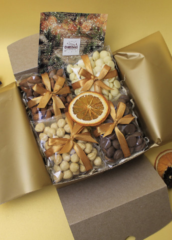 Якщо хочеш скласти власний новорічний подарунок з цукерками, починай з базових солодощів — шоколад, мармелад, карамель. Добре, коли в наборі є різні форми і кольори, тоді він виглядає цікавіше.