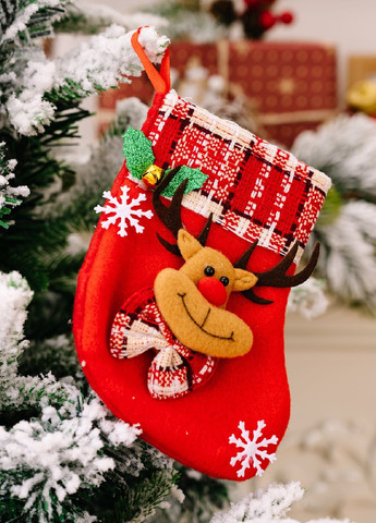 Новорічний, різдвяний носок-чобіток для тістечок та цукерок. У новорічні свята розвісьте новорічні шкарпетки по дому і сховайте в них різні ласощі та солодощі. Матеріал - тканина і фетр, з аплікацією. Розмір - 20х11 см