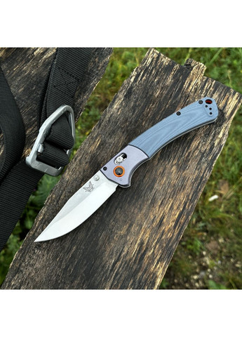 До основних переваг Benchmade Crooked можна віднести наступні особливості. Замок Axis Lock: Це патентований механізм замикання, який забезпечує надійне фіксування леза в розкритому положенні. Він дозволяє легко відкривати та закривати ніж однією рукою. Кишенькова кліпса: Це зручна функція, яка дозволяє носити ніж на поясі або в кишені. Двосторонній шпеньок для відкриття великим пальцем: Це зручний спосіб відкривати ніж однією рукою. Ви можете використовувати великий палець для швидкого відкриття. Загалом, цей ніж обіцяє бути надійним і зручним помічником як для мисливців, так і для повсякденного використання. Характеристики: - Бренд: benchmade - Загальна Довжина: 234 мм - Довжина клинка: 100 мм - Товщина клинка: 3.15 мм - Фініш клинка: Satin - Тип клинка: Clip point - Тип замка: Axis Lock - Механізм: Шайби - Марка Сталі: 9Cr18MoV - Твердість Сталі: 57 HRC - Матеріал руків'я: G10 - Колір руків'я: Синій - Матеріал чохла: Немає - Вага: 162 г