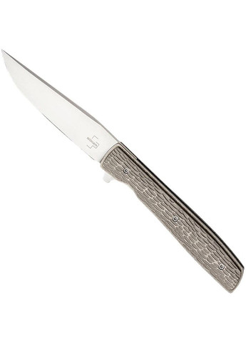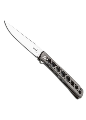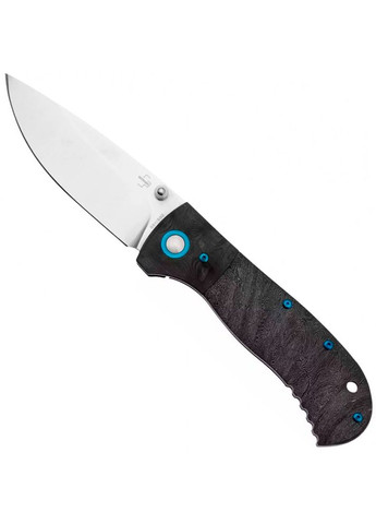 Красивий клинок ножа, виконаний з добре відомої усім дамаській сталі. Варто відмітити, що клинок вимагає деякого догляду. Після роботи його слід досуха протирати ганчіркою, а зберігати його треба в місці де немає вологи. Матеріал рукояті анодований алюмінієвий сплав, це дорожчий матеріал, в порівнянні із звичайним алюмінієм. Проте, він у свою чергу і набагато краще протидіє корозії, ударам і зносу. Форма клинка: spear - point Вид ножа: кишеньковий, викидний Тип замку: Button lock Тип заточування: прямий Колір клинка: хром з тим, що труїть Матеріал руків'я: Алюмінієвий сплав (6061 T - 6 Aluminium) з покриттям Довжина клинка: 85 мм Марка сталі: Damascus Твердість клинка: 60-62 HRC Довжина в складеному стані: 110 мм Загальна довжина: 195 мм Товщина клинка: 3 мм Вага: 106 г Колір руків'я: чорний Додаткові функції: Pocket clip — кліпса для носіння ножа на поясі або кишені. Lanyard Hole — отвір в рукояті для страхувального корду або ременя. Компанія виробник - Böker