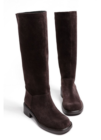 Черевики з натуральної замші. Підклад байка. Висока халява та квадратний носок. Без застібки. Висота підошви 5 см.