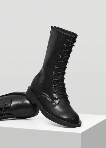 Жіночі осінньо-зимові чоботи. Ці чоботи мають круглий носок і товстий підбор. Вони пропонують британський стиль та середню висоту каблука. Чоботи застібаються на блискавку збоку.