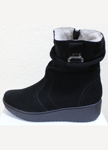 Колір Чорний / Сезонність Зима / Склад верха Натуральна замша / Висота підбора На низьких підборах / Застібка Блискавка