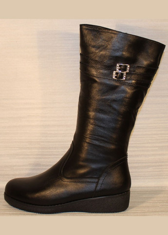 Шкіряні чоботи зимові на повну ногу. Утеплювач - вовняне набивання. Підошва з термопластичної гуми, не слизька. Висота танкетки: ззаду – 4см; попереду – 2см. Висота халяви - 25см. Обхват халяви на цій висоті – 36см. Розмір: 39 Довжина устілки: 39р-25,5см