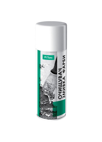 Змивка старої фарби PITON — універсальний гелеобразний засіб для швидкого видалення старих лакофарбових покриттів з гладких поверхонь: метал, скло, деякі види пластику. Очищує від масляних, алкідних, акрилових, нітроцелюлозних, силіконових, епоксидних фарб; грунтовок; лаків; тонкошарових порошкових покриттів; залишків клею і старих гумових ущільнювачів. Одним балончиком можна обробити 1,3 – 1,5 м². Розпилюється під будь-яким кутом на 360°. Діє без використання абразивних матеріалів. Не викликає корозії на поверхні металу. Без різкого запаху. Не стікає з вертикальних поверхонь. Легко очущувати предмети складної конфігурації. Спосіб застосування Поверхню очистити від бруду та вимити водою. Плівкою або скотчем захистити поверхні, які не потрібно очищати від старої фарби. Розмішати вміст балона, струшуючи його 1-2 хвилини. У процесі роботи необхідно періодично струшувати балон. Рівномірно нанести засіб на відстані 10-15 см і залишити контактувати з поверхнею на 15-30 хвилин до “спінення”, появи розтріскувань або розм’якшення старого лакофарбового покриття. Для видалення дуже стійких багатошарових покриттів повторить обробку. Розм’якшене покриття видалити шпателем. Знежирити поверхню перед нанесенням нового лакофарбового покриття. Важливо! Засіб агресивний. Використовуйте респіратор, маску, окуляри, захисний одяг, гумові рукавички. Примітки: Перед очищенням пластикових поверхонь, рекомендується нанести невелику кількість засобу в малопомітному місці і переконатися, що засіб не розчиняє пластик. У спекотну і вітряну погоду оброблену поверхню накрити поліетиленовою плівкою для уповільнення випаровування засобу. На пористих поверхнях (дерево, бетон, цегла тощо) ефективність засобу може значно зменшуватися.