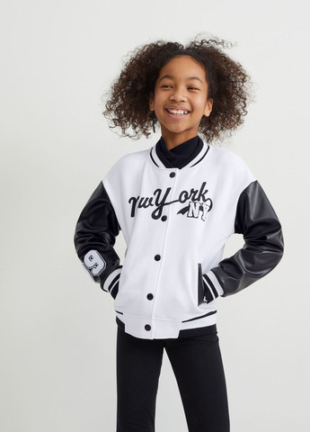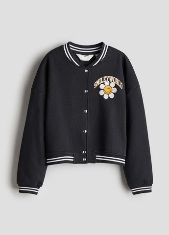 Теплий бомбер, подовженний, для дівчинки, чорного кольору із трикотажної тканини з начосом. Зручний, гарний, практичний. Еластична гумка на горловині, рукавах та по низу бомбера. Декорован лампасами, апплікаціею та пайетками. Застібається на блискавку по всій довжині. Склад: 60% бавовна, 40% поліестер. Виробництво Україна.