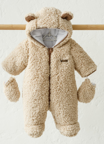 Теплий зимовий комбінезон із закритими ніжками, виготовлений із плащової тканини, сірого кольору, з квітковим принтом, захищає від снігу та дощу. Підкладка всередине фліс, не кошлатиться. Застібається на дві змійки по всій довжині комбінезона і на кнопочку біля горловини. Капюшон декорований знімним хутром світло рожевого кольору, регулюється за допомогою гумки. Рукави з манжетами, відвертаються і закривають ручки. Утеплювач синтепух. Склад 100% поліестер. Виробництво Україна.