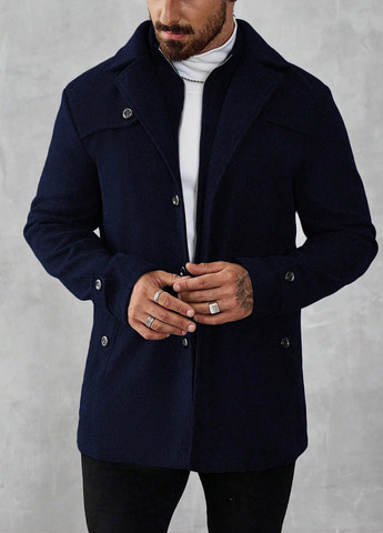 Чоловіче напівпальто однотонне Manfinity Homme. Має стандартний крій. Воно включає пояс, застібку на два гудзики і кишені. У нього стандартний рукав та поділ. Виріз горловини – відкладний, а планка двобортна. Тканина не тягнеться.