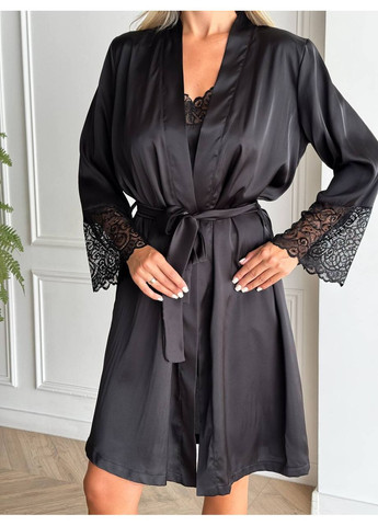 Стильний та ніжний комплект із трьох речей: майка на тонких бретелях, шорти та халат-накидка ▪️ Тканина: шовк Армані преміум-якості — м’який, легкий і приємний до тіла ▪️ Вишукане мереживо на топі та рукавах додає романтичності та жіночності ▪️ Ідеально підходить для дому, відпочинку та затишних вечорів 📏 Розміри: 42–46