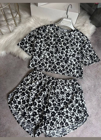 Колір Чорно-білий / Фасон З шортами / Стиль Домашній, Повсякденний / Візерунок Квітковий / Матеріал Трикотаж