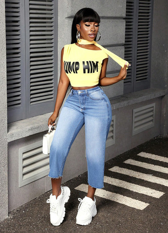 Колір Синій / Висота посадки Висока талія / Візерунок Однотонний / Стиль Кежуал