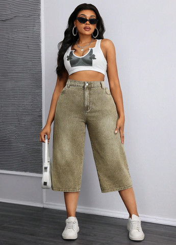 Джинсові капрі SHEIN EZwear із принтом. Вони облягаючого крою. Застібка на блискавку. Рекомендації щодо догляду: машинне прання.