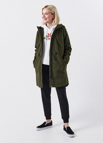 Стильна та затишна парка з худі на змійці з кулісою виготовлена з вовняного трикотажу, що дарує тепло та комфорт у холодну погоду. Блискавка по всій довжині додає зручності при вдяганні, а глибока кишеня «худі» — практичності для зберігання дрібниць або зігрівання рук. Регульована куліска на талії дозволяє підкреслити фігуру, створюючи більш виразний силует. Капюшон ефективно захищає від вітру, додаючи додатковий комфорт. Довжина парки комфортно прикриває стегна, створюючи акуратний та витягнутий силует, що підходить для різних стилів і обставин.