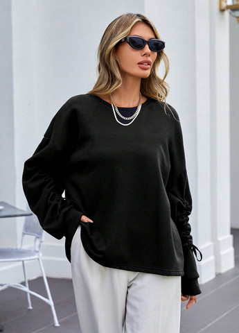 Цей звичайний світшот великого розміру має довгі рукави зі спущеними плечима для додаткового комфорту, круглу горловину та вільне прилягання до тіла. Він виготовлений із трикотажної тканини, що забезпечує легку еластичність, пропонуючи тепло та гнучкість.