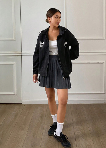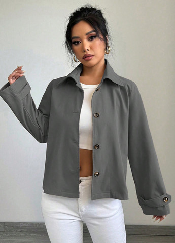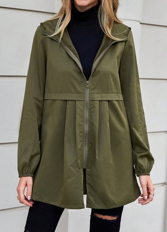 Вітровка з капюшоном SHEIN LUNE – це повсякденна куртка у стилі весни/осені з тканини. Має довгий рукав зі спущеним плечем і однобортну планку спереду. Куртка звичайної довжини, вільного крою, з вирізом із капюшоном. Деталі включають застібку на шнурку та кишені.