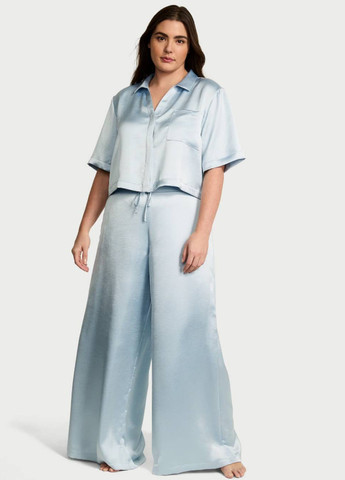 Жіноча піжама Victoria Secret. Комплект складається з двох частин: стильної піжамної сорочки з коротким рукавом та зручних піжамних штанів. Носіння піжами стало набагато розкішнішим завдяки цій міцній атласній тканині з гламурним блиском. Ця елегантна укорочена сорочка із застібкою на гудзики спереду ідеально підходить до вільних штанів з високою талією. Сорочка з коротким рукавом застібається на гудзики під прихованою планкою. Одна накладна кишеня спереду. Широкі штани з еластичним поясом на зав'язках. Дві кишені з боків. Позаду фурнітура з логотипом. Цей комплект, виконаний з дуже приємної гладкої тканини - відмінний вибір для тих, хто цінує стиль і комфорт у своєму нічному гардеробі. Відмінна якість.