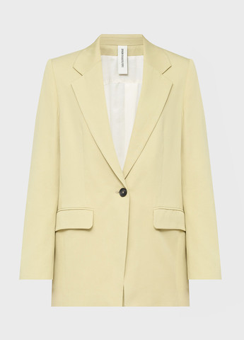 Двобортний піджак із м'якої тканини. З гострими лацканами та декоративною петлею. З прорізною кишенею зверху, прорізними передніми кишенями з клапанами та двома внутрішніми кишенями. Також з декоративними гудзиками на рукавах та шліці ззаду. Вільний крій, вільний, але не надто вільний. Повністю на підкладці.