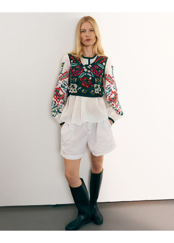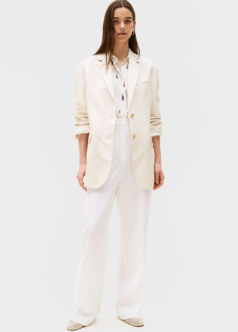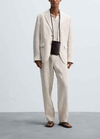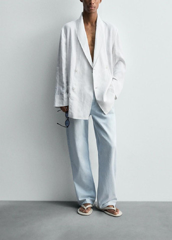 Вид виробу: комплект: блейзер та штани з еластичним поясом. Силует: вільний. Посадка по лінії талії: вільна, трохи занижена. Щільність тканини: полегшений, змішаний матеріал. Вид застібки: гудзик та регулюючий шнурок. Наявність підкладки: присутня. Наявність та вид кишень: кишені у рамку з клапаном у блейзері та внутрішні кишені у штанах. Виріз горловини: класичний. Вид рукава: свердловин. Догляд за виробом: Делікатне, швидке, ручне прання при 30 градусах, без використання агресивних миючих засобів. size UA 42; size eur 36; size USA 4; size INT XS.13.
