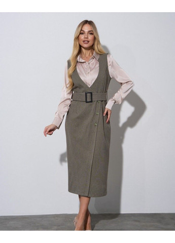 Бежева вовняна сукня-сорочка з картатим принтом. Модель на ґудзиках з довгими рукавами, асиметричним низом та коміром. Сукня міні довжини зі знімним поясом та накладними кишенями.Напівобхват: Груди: S (51), M (53), L (55), XL (57), Талія: S (53), M (55), L (57), XL (59), Стегна: S ( 55), M (57), L (59), XL (60), Довжина виробу - 88, Рукав - 60, Тканина: Низька еластичність.