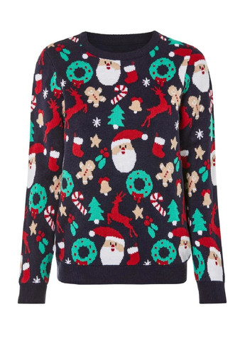 Колір Темно-синій / Фасон Пуловер / Візерунок Новорічний / Стиль Повсякденний / Довжина рукава Довгий
