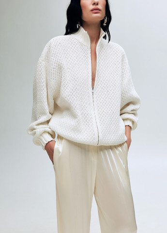 Модель виготовлена з м’якого вовняного трикотажу (60% вовна, 20% віскоза, 20% поліамід), що забезпечує тепло, м’якість і довговічність. Костюм складається з подовженого светра oversize з довгими рукавами та широких брюк із середньою посадкою. Светр доповнений щільними манжетами, а штани мають еластичний пояс для зручної посадки.