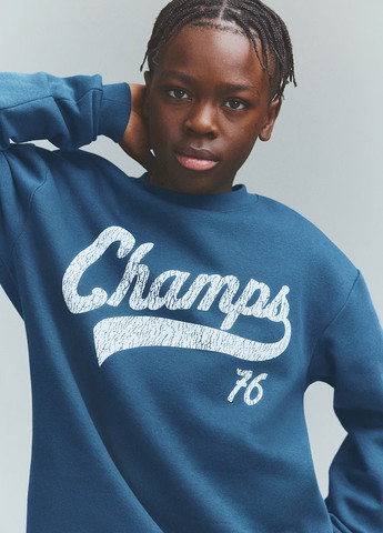 Колір Темно-блакитний / Матеріал Бавовна, Трикотаж з начосом / Візерунок Напис / Крій Вільний / Довжина рукава Довгий