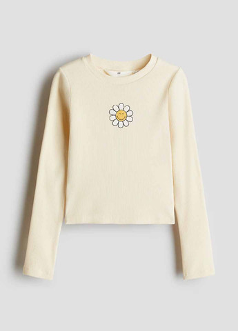 Лонгслів з дрібного ребристого бавовняного трикотажу з принтом спереду. Круглий виріз горловини та довгі рукави.