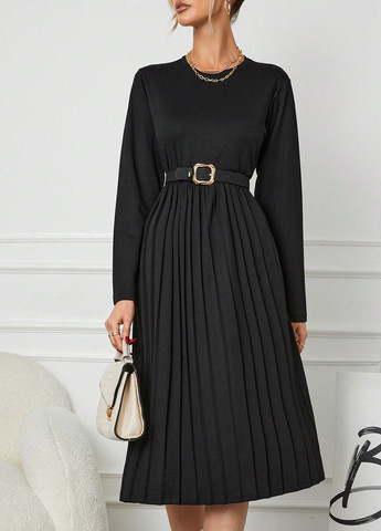 Матеріал Поліестер, Трикотаж, Мереживо / Колір Чорний / Фасон Кльош / Довжина виробу Міні / Стиль Діловий, Кежуал