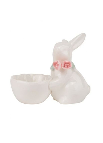 Висота - 8,5 см, довжина - 9,5 см, глибина - 5,5 см. Великодня керамічна підставка для яйця з білим кроликом – це витончений святковий аксесуар для сервірування великоднього столу. Фігурка кролика, прикрашена ніжними рожевими трояндами, додає виробу чарівності та весняного настрою. Підставка виконана у формі квітки, що гармонійно поєднується з білою глянцевою керамікою. Ідеальний вибір для святкової подачі крашанок або декоративного оформлення столу.
