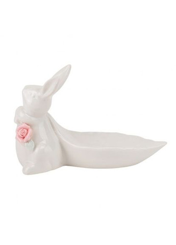 Висота - 9 см, довжина з кроликом - 18 см, діаметр підставки - 15 см. Великодня керамічна підставка з білим кроликом – витончений і стильний елемент святкового декору. Виготовлена у формі невисокої платформи з хвилястими краями, вона ідеально підходить для подачі пасхальних ласощів, випічки або яєць. Білий кролик, що підтримує підставку, додає виробу ніжності та святкової атмосфери, а делікатна квіткова прикраса завершує вишуканий дизайн. Така підставка стане чудовим доповненням до великоднього столу або елегантним подарунком для поціновувачів гарного декору