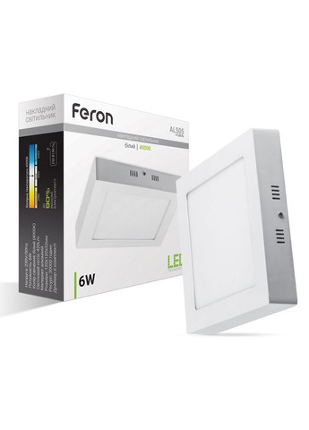Накладний світлодіодний світильник Feron AL505 6Вт 4000К IP20 білий Накладний світлодіодний світильник Feron AL505 — сучасний освітлювальний прилад, який поєднує високу енергоефективність та стильний дизайн. Призначений для встановлення на стелі або стінах, цей світильник стане ідеальним рішенням для освітлення житлових, офісних або комерційних приміщень. Особливості світильника Feron AL505: Підвищена енергоефективність: Світильник забезпечує ефективність 100 Лм/Вт, що дозволяє значно знизити витрати на освітлення. Енергоефективність: Вбудовані світлодіоди забезпечують високу яскравість при мінімальному споживанні електроенергії. Довговічність: Світлодіоди мають тривалий термін служби, що забезпечує безперебійну роботу світильника на багато років без необхідності частих замін. Сучасний дизайн: Лаконічний дизайн світильника гармонійно вписується в будь-який інтер'єр, додаючи йому сучасного вигляду. Простота монтажу: Світильник легко встановлюється на будь-яку поверхню, забезпечуючи надійну фіксацію. Висока якість матеріалів: Міцний корпус світильника виготовлений з якісних матеріалів, що гарантує довговічність та стійкість до зовнішніх впливів. Feron AL505 — це ідеальне поєднання функціональності та естетики для вашого інтер'єру.