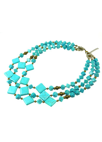 Масивне та ефектне намисто, виготовлене з великих овальних намистин бірюзового кольору. Кожна намистина має розмір приблизно 30*30*10 мм і демонструє насичений блакитно-зелений відтінок з характерною темною сіткою або імітацією кракелюру, що надає прикрасі виразного, етнічного вигляду, як це чудово видно на фото. Намисто має довжину 52 см, що дозволяє носити його як коротке кольє або підвіску. Прикраса оснащена надійною застібкою. Використання якісних та легких матеріалів забезпечує комфорт при носінні, незважаючи на великий розмір елементів.Бірюза здавна вважається каменем, що приносить щастя, захист та успіх. Її яскравий, життєрадісний колір ідеально підходить для створення акцентного літнього чи весняного образу, а також додає динаміки до повсякденного стилю. Завдяки великим розмірам намистин, це кольє стане центральним елементом вашого вбрання, привертаючи увагу та підкреслюючи вашу індивідуальність та сміливий смак до природних, яскравих аксесуарів.