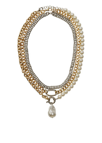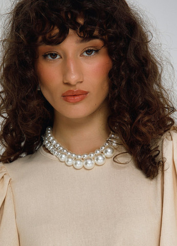 Сріблястий ланцюжок і фурнітура, що з'єднують усі елементи, підкреслюють теплі відтінки перлів і скла, додаючи виробу легкості та сучасного вигляду. Завдяки своїй довжині та кольоровій гамі, намисто стане ідеальним доповненням до вечірнього образу чи яскравим акцентом у повсякденному вбранні. Використані якісні та легкі матеріали забезпечують комфорт під час носіння.
