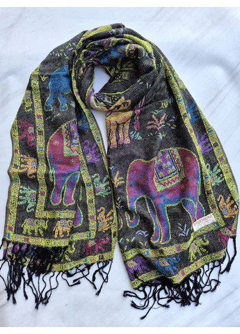 Шарф-палантин жіночий весна-осінь у малюнок слонів з кистями Різнокольоровий.