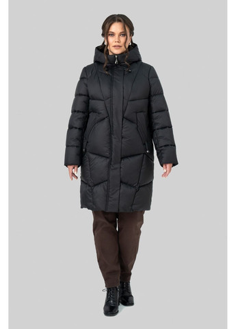 Пальто прямого силуету (єврозима до -5 ℃), виготовлена з плащової тканини, наповнювач тинсулейт 120+60 (г/м2). Каптур втачний, висота регулюється за допомогою шнура з фіксаторами і наконечником. У рельєфних швах полиці виконана кишеня на блискавку, а також кишеня листочка, декорована люверсом та шнуром із затискачем. Рукав втічний, двошовний. Застібка на блискавку та планку на кнопках (8 шт), що додатково захистить від вітру. Внизу бічних швів імітація застібки на блискавку. Низ рукава, оздоблення капюшона та підрізи виконані з еластичної прогумованої кіски. Підкладка: нейлон.