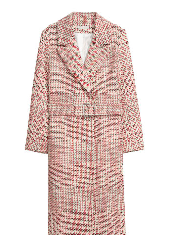 Двобортне пальто з м'якої вовняної тканини. Пасок, що зав'язується на талії, прорізні бічні кишені і застібка на гудзики на кінцях рукавів. Шлиця ззаду та легка ткана підкладка.