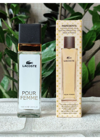Парфумована вода для жінок, версія Pour Femme Аромат: Тип аромату: Деревні, Квіткові. Початкова нота: Бергамот, Зелене яблуко, Олія мускатного горіха, Перець, Фрезія. Нота серця: Геліотроп, Гібіск, Жасмин, Троянда, Фіалка. Кінцева нота: Кедр, Лабданум, Ладан, Мускус, Сандалове дерево, Шкіра. Об'єм: 40 мл. Уже вкотре майстри парфумерного мистецтва шукають ключі від непередбачуваного й багатогранного жіночого серця. Жінка завжди була й залишається загадкою, але працівники відомого бренда знову і знову знаходять способи передати внутрішній світ прекрасних дам за допомогою неперевершених композицій. Аромат Pour Femme - це неймовірно вдала спроба проникнути у глибини жіночої душі, відшукати там дорогоцінні скарби та підняти їх на поверхню, аби явити всьому світові. Звісно, мова йде не про перлини чи алмази, а про риси характеру і притягальні сторони душі. Щоб показати внутрішній світ власниці аромату, парфумери використали різноманітні квіткові й деревні ноти, які точно передають те, що неможливо побачити очима. Букет духмяних відтінків і напівтонів Лакост Pour Femme малює манливий та спокусливий образ.