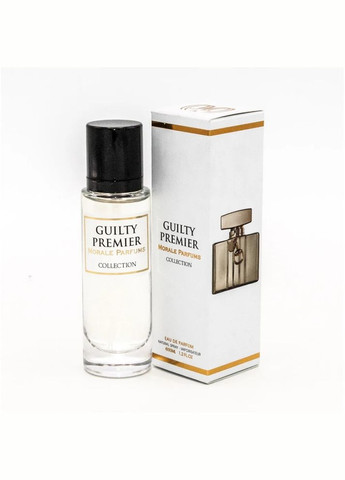 Парфумована вода для жінок Morale Parfums Guilty Premiere — справжнє втілення елегантності та витонченості. Композиція відкривається свіжими і яскравими ароматами бергамоту й апельсина, які одразу привертають увагу та створюють гармонійний початок. Далі розкриваються серцеві ноти, що додають аромату глибини та чуттєвості. Вони сповнені привабливого поєднання ніжного мускусу та квіткових акцентів, які підкреслюють жіночність і вишуканість обраного аромату. Фінальний штрих композиції — базові ноти. Вони сповнені теплих і насичених акцентів шкіряного аромату та деревного акорду, що залишають після себе незабутній витончений шлейф.