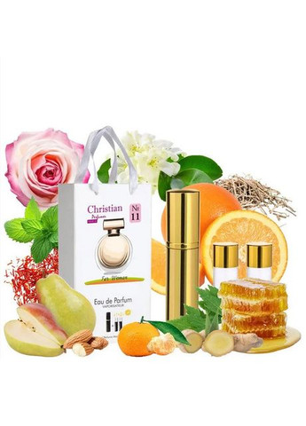 Набір жіночих духів Christian № 011 з атомайзером та двома запасками 3 х 12 мл Ці парфуми - чарівне поєднання солодких, східних та квіткових нот. Верхня нота з грушею, імбиром, медом, мигдалем, апельсином та клементином створює солодкий та освіжаючий старт. Нота серця розквітає з шафраном, жасмином, трояндою, стираксом та артемізією, надаючи аромату таємничість та вишуканість. Завершальна нота з ветівером та пачулі створює глибокий та стійкий фінал, завершуючи цей унікальний букет. Ці парфуми покликані підкреслити вашу індивідуальність, ніби кожен їхній нюанс – це нота вашої унікальної мелодії. Тип аромату: солодкі, східні, квіткові Верхня нота: груша, імбир, мед, мигдаль, апельсин, клементин Нота серця: шафран, жасмин, троянда, стиракс, артемізія Кінцева нота: ветивер, пачулі Подарунковий набір складається з 3 флаконів парфумованої води: 1 атомайзер та 2 запасні флакони. Атомайзер легко поміститься навіть у маленьку косметичку. Об'єм: 3 х 12 мл
