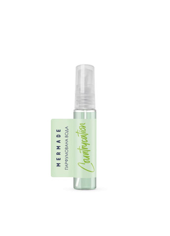 Парфумована вода для жінок Mermade Countrycation мініатюра 5 мл Mermade Countrycation розкривається фруктово-деревними нотами. На початку вас огортає ностальгійною хмаринкою, в якій звучать нотки солодкої магнолії, свіжого огірка та терпкого грейпфрута. Серце аромату пронизує соковитий запах солодких яблук, ніжної конвалії та туберози. Пік звучання парфуму досягається базовими дерев'яними нотами сандалу та амбри. Цей ніжний освіжаючий аромат створений для романтичних натур, що часто віддаються мріям та спогадам. А ще туалетна вода Mermade — чудовий спосіб згадати про дитинство, прогулянки зеленою травою та ігри з друзями під літнім зоряним небом. Зручний формат тревел-версії 5 мл дозволяє приміряти на себе новий аромат від Мермейд і взяти улюблений парфум у дорогу. Тип аромату: фруктово-деревні. Початкова нота: Магнолія, Огірок, Грейпфрут. Нота серця: Солодке яблуко, Конвалія, Тубероза. Кінцева нота: Сандал, Амбра. Об'єм: 5 мл