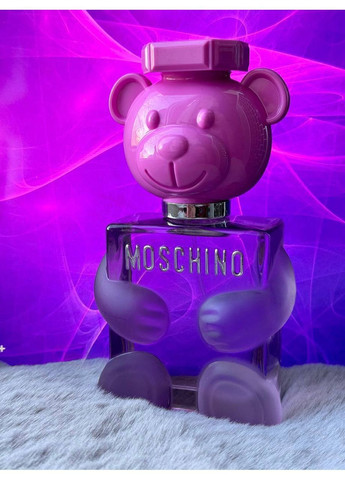 Звучання квітково-фруктової композиції з вишуканим східним характером — справжній маніфест рожевого з яскравими акцентами, а культовий флакон у формі плюшевого ведмедика з прозорого скла розкриває ніжні обійми для своєї прекрасної власниці. Ольфакторна піраміда туалетної води Moschino Toy 2 Bubble Gum: Верхні ноти стартують зацукрованими мотивами цитрусових у обрамленні іскристих бризок італійського лимона й італійського апельсина. Ноти «серця» утворюють соковите та багатогранне звучання, підкреслюючи красу соковитого та солодкого акорду жувальної гумки обволікальним теплом кориці, грайливим і спокусливим звучанням чорниці, солодко-гострим імбиром, оксамитною болгарською трояндою, соковитим персиком і його ніжними кольорами. Базові ноти утворюють шовковистий коктейль із чуттєвих обертонів амброксану та мускусу в обіймах деревних мотивів кедра. Кінцева нота Кедр, Мускус, Амброксан Початкова нота Лимон, Апельсин Нота серця Персик, Чорна смородина, Імбир, Кориця, Болгарська троянда Тип аромату Солодкі, Квіткові, Фруктові