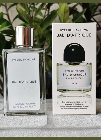 Вихор, якому важко протистояти! Чуттєвість, сила і млість, яким неможливо не піддатися! Ритмічність і запаморочливе тяжіння, які буквально вібрують у кожному з відтінків цього аромату. Якби шанувальників нішевої парфумерії запитали, до яких видань можуть ставитися ці слова, ймовірно, вони б назвали знаменитий Bal D'Afrique від торгової марки Byredo Parfums. Від цієї композиції віє розкішшю, якій віддають перевагу респектабельні, добре виглядають люди. У ній є щось містичне, незвичайне, гіпнотизуюче – те, що приваблює більше, ніж звичні та звичайні речі. Цю парфумовану воду обирають чоловіки та жінки, які не приховують, всіляко підкреслюють свою привабливість та сексуальність. У її східно-деревних мотивах чується медова терпкість апельсинового кольору, свіжість динамічного бергамота і лимона, що бадьорить, вишуканість чорнобривців і глибина чорної смородини. Квітковий настрій аромату продовжується його «серце», де балом правлять хвилюючий жасмин, романтична фіалка, ніжний і чарівний цикламен. Темпераментність парфуму задають ноти спокусливого мускусу, теплої амбри, вишуканого віргінського кедра та неординарного єгипетського ветівера.