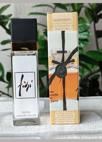 Жіночий міні парфум з ароматом Fidji Аромат: Тип аромату: Квіткові. Початкова нота: Гальбанум, Гіацинт, Лимон. Нота серця: Гвоздика, Жасмин, Троянда, Фіалка. Кінцева нота: Амбра, Мускус, Пачулі, Сандал. Об'єм: 40 мл.