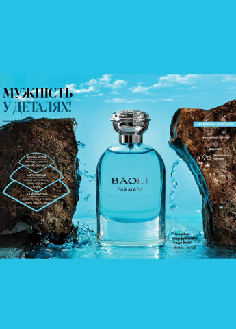 Сміливий і приголомшливий. Новий аромат Baoli – це суміш морського бризу, сандалу та чуттєвих нот мускусного дерева, що робить його справді незабутнім! Цей аромат від Farmasi створений для сучасного та впевненого в собі чоловіка, який цінує ексклюзивні та розкішні аромати. Велика увага була приділена кожній ноті, щоб створити баланс і гармонію, яка розкриватиметься в міру використання. Завдяки присутності лаванди та шавлії у верхніх нотах, аромат Baoli має свіжість і легкість, яка нагадує про прохолодний морський бриз. Ноти лаванди та шавлії також мають заспокійливу та розслаблюючу дію, що робить цей парфум ідеальним для повсякденного використання. Серцеві ноти аромату представлені зеленими нотами, хвоєю та лілією. Вони надають аромату глибини та мужності, при цьому зберігаючи його свіжість та легкість. У базових нотах аромату можна знайти дубовий мох, ветивер, амбру та білий мускус. Вони надають аромату стійкості і глибини, роблячи його надзвичайно спокусливим і привабливим. Чоловіча парфумована вода Farmasi Baoli – це ідеальний вибір для тих, хто шукає аромат, який підкреслюватиме їхню індивідуальність та стиль. Він підійде для будь-якого випадку – від повсякденних занять до особливих заходів, надаючи образу витонченості та розкоші. Упаковка аромату також привертає увагу своєю елегантністю – стильний флакон із міцного скла із синім відтінком та сріблястим дизайном. Проста та вишукана упаковка відображає характер цього аромату – сміливий та вишуканий. Пориньте у світ розкоші та спокуси з чоловічою парфумованою водою Farmasi Baoli. Відчуйте впевненість і силу, що дозволяють досягати будь-яких висот і привертати увагу всіх навколо. Інструкція по застосуванню: Духи наносити безпосередньо на чисту суху шкіру. Нанесіть аромат на ті місця, де легко промацується пульс: у улоговині шиї, за вухами, на зап'ясті, у вигинах ліктів, під грудьми. Склад: Верхні ноти: лаванда, шавлія, неролі Нота серця: зелені ноти, ялина, лілія Базові ноти: дубовий мох, ветивер, амбра
