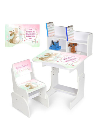 Стільниця: розмір стільниці - 70см-38см, регулювання по висоті з підставкою для книг - 77см/100см, регулювання по висоті з лампою - 102см-125см.