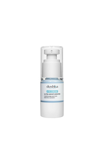 Зволожуючий крем для шкіри навколо очей Dushka з гіалуроновою кислотою, еластином та колагеном Зволожувальний крем Dushka по догляду за ніжною шкірою навколо очей розгладжує мімічні зморшки, робить шкіру добре зволоженою, більш пружною, еластичною та ніжною. Активні компоненти крему: гіалуронова кислота: насичує вологою, створює захисний бар'єр на поверхні шкіри, перешкоджає зневодненості, розгладжує зморшки, прибирає сухість, злегка освітлює тон епідермісу; колаген – надає шкірі пружності, допомагає відновити шкірний каркас; еластин - ще один важливий білок для молодості шкіри, що працює в парі з колагеном, забезпечує еластичність, розгладжування зморшок та підвищення тургору. Спосіб застосування: наносьте крем на чисту суху шкіру повік вранці та ввечері. Об'єм: 15 мл