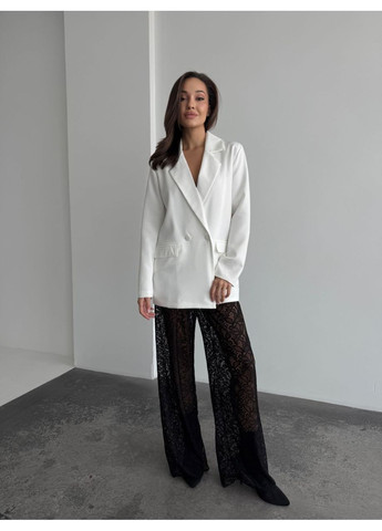 Жіночий піджак, декорований гіпюром — це поєднання елегантності, стилю та вишуканої розкоші, яке підкреслить вашу індивідуальність! Виготовлений із високоякісного матеріалу, піджак має бездоганну посадку і комфортний крій, а гіпюрові вставки та декор додають образу витонченості та романтичного шарму. Така деталь створює делікатний акцент і робить піджак ідеальним вибором для урочистих заходів, ділових зустрічей або вечірніх виходів. Цей піджак — must-have для жінок, які цінують стиль, елегантність і унікальні деталі в гардеробі. Замовляйте зараз і підкресліть свій бездоганний смак у кожній деталі!