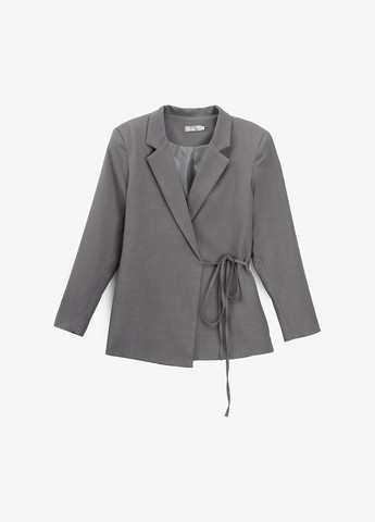 Вільний подовжений піджак на гудзиках, виконаний з однотонної костюмки молочного кольору. Піджак з англійським коміром та довгими рукавами оснащений декоративними клапанами. Модель без текстильної підкладки, з потайними плічками.