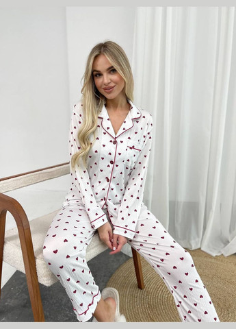 Жіночий піжамний костюм, виготовлений з принтованого американського крепу. Комплект складається з майки та шортів. Майка з глибоким V-подібним вирізом декольте та тонкими бретелями. Вона має подовжений крій вільний фасон, завдяки чому гарно сідає по фігурі. Шорти також вільного фасону з високою посадкою та гумкою на талії без застібок. По боках присутні кишені з відрізним бочком.
